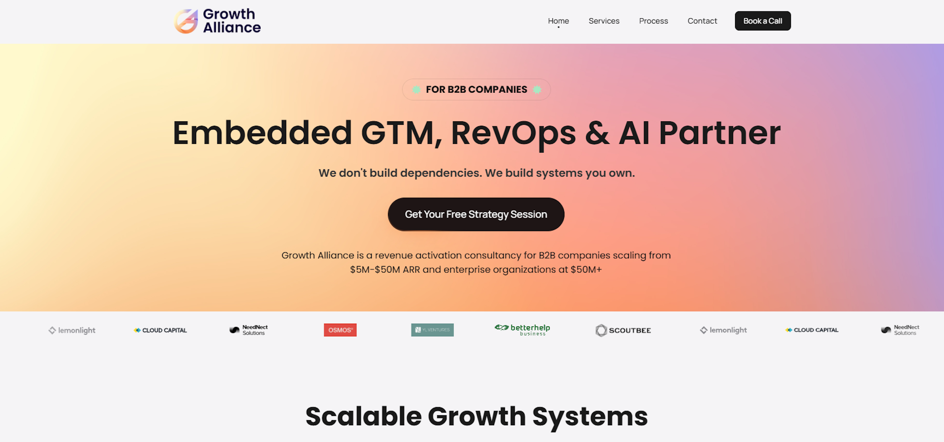 Growth Alliance is a B2B growth agency that blends account-based strategies with outbound execution to drive pipeline and revenue. Works well for companies seeking tightly-aligned marketing + SDR outreach to target high-value accounts.